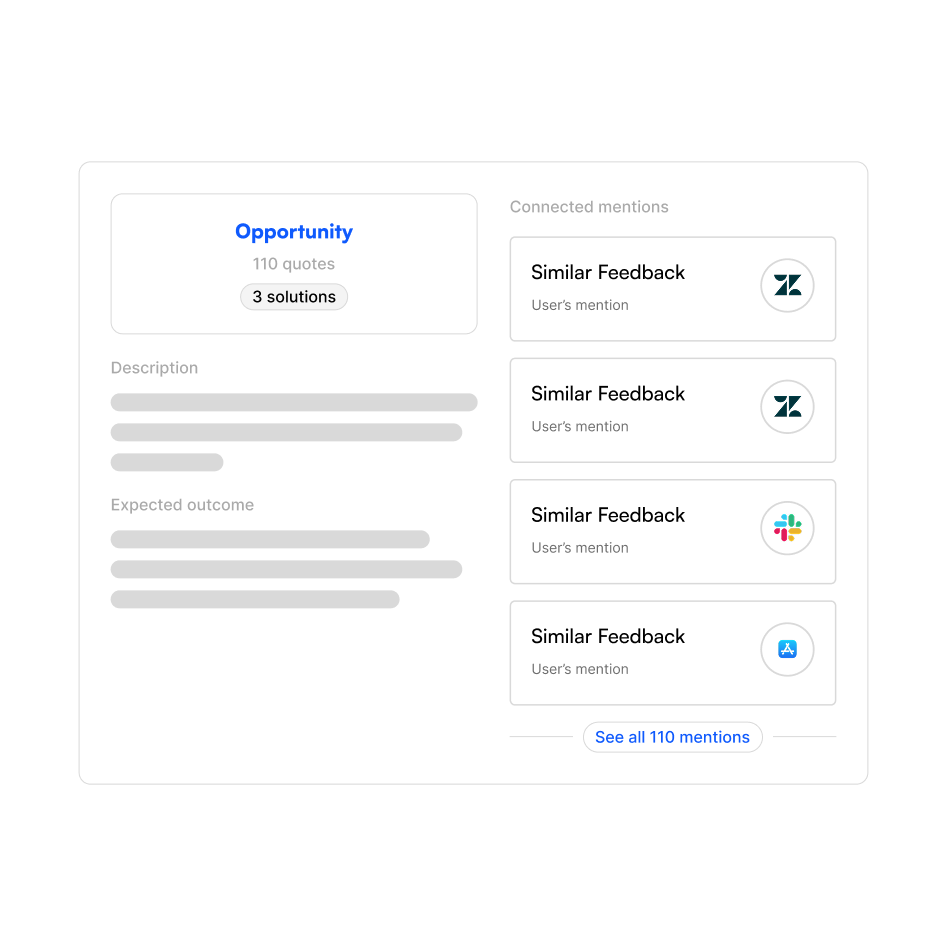 Link product opportunities to customer feedback, sync them with your ticketing system and prioritize more confidently with actionable insights.